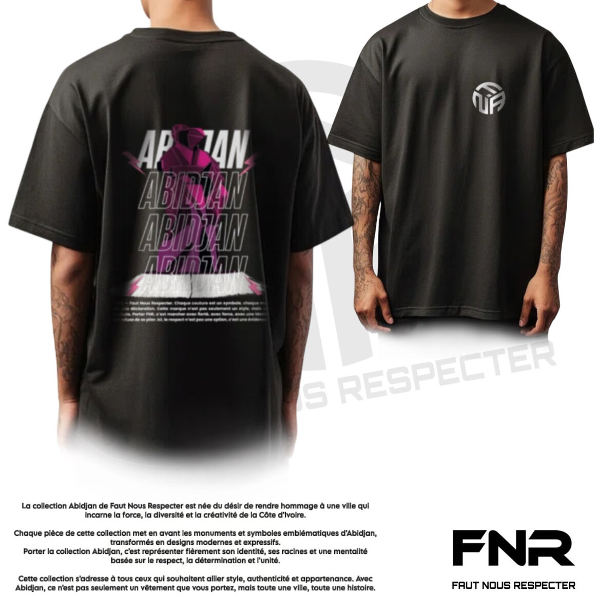 Exprimez votre style avec ce t-shirt exclusif "Abidjan" de la collection Faut Nous Respecter. Inspiré par l'énergie et la créativité ivoirienne, ce t-shirt en coton haut de gamme offre confort et durabilité. Parfait pour les amateurs de mode urbaine, ce design unique affiche un hommage aux emblèmes vibrants de la Côte d'Ivoire. Idéal pour les sorties décontractées, il s'adapte à tous vos looks du quotidien.