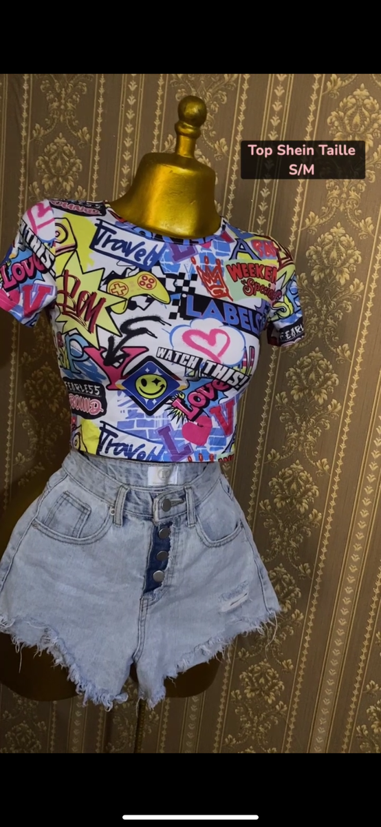 Ce t-shirt graphique coloré et tendance est parfait pour les sorties décontractées ou les occasions spéciales. En taille S/M, il offre une coupe ajustée qui met en valeur. Associez-le avec un jean ou un short pour un look moderne et fun. Idéal pour les amatrices de mode qui aiment se démarquer.