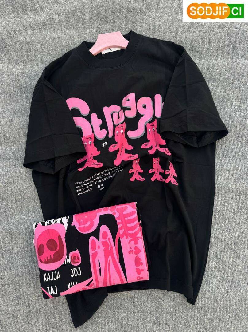 T-shirt tendance avec imprimé artistique "Struggle", idéal pour un look décontracté et unique. Fabriqué en coton doux, parfait pour un confort quotidien. Portez-le pour exprimer votre style personnel!