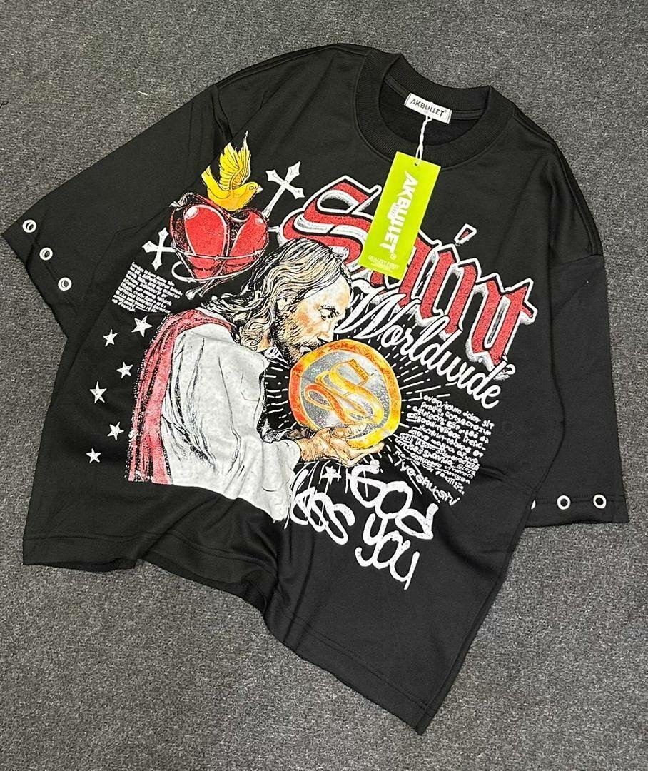 Ce t-shirt noir graphique est l'incarnation du style urbain. Conçu avec une attention aux détails, il présente des motifs audacieux qui captent l'attention. Fabriqué dans un tissu confortable, il est idéal pour un usage quotidien ou pour se démarquer lors d'un événement spécial. Parfait pour ceux qui cherchent à exprimer leur personnalité à travers leur garde-robe.