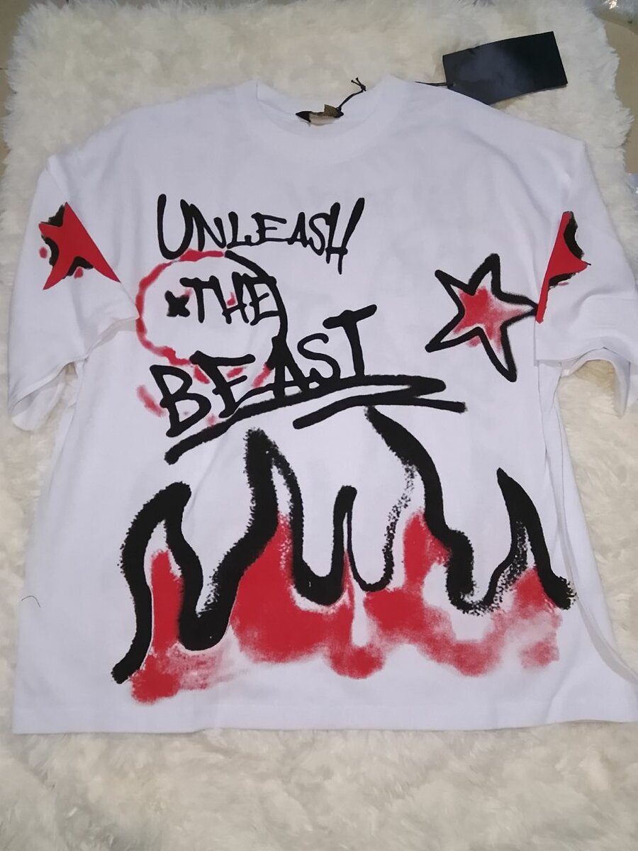 Exprimez votre style audacieux avec ce t-shirt graphique "Unleash the Beast". Fabriqué en coton doux, il est orné de flammes vives et d'étoiles rouges. Idéal pour un look décontracté et tendance, il convient parfaitement pour les sorties entre amis ou les festivals. Affirmez-vous avec une déclaration mode captivante!
