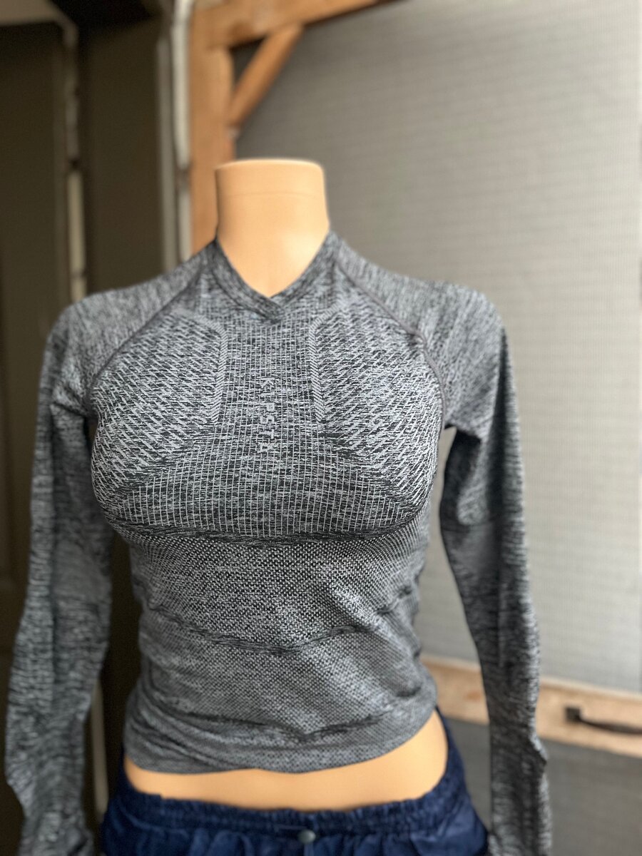 T-shirt gris chiné à manches longues, confortable et élégant. Idéal pour les tenues décontractées ou sportswear. Conçu pour mettre en valeur votre silhouette.