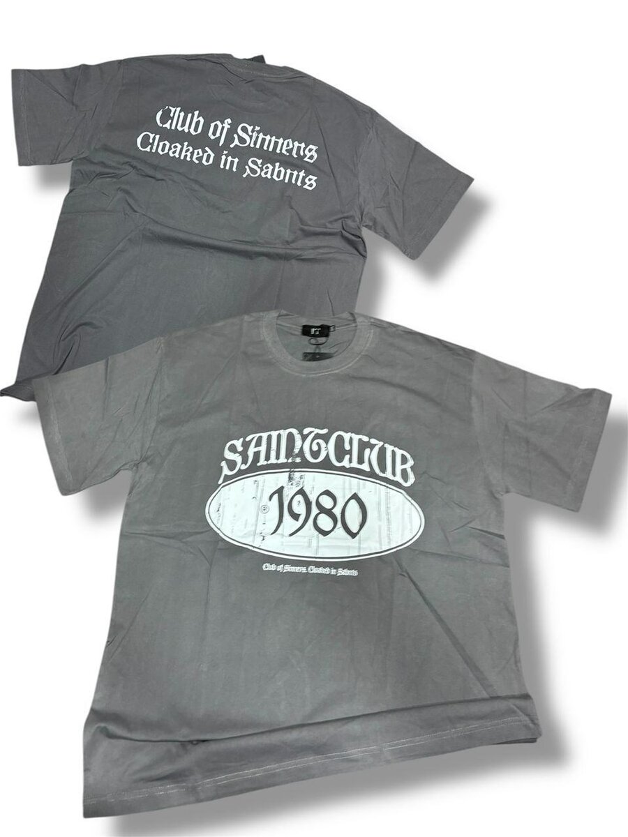 T-shirt gris tendance avec imprimé vintage 'Saint Club 1980', idéal pour les amateurs de mode rétro. Confortable et léger, parfait pour un look casual et original. Fabriqué en coton doux, il est idéal pour un usage quotidien ou des occasions spéciales.