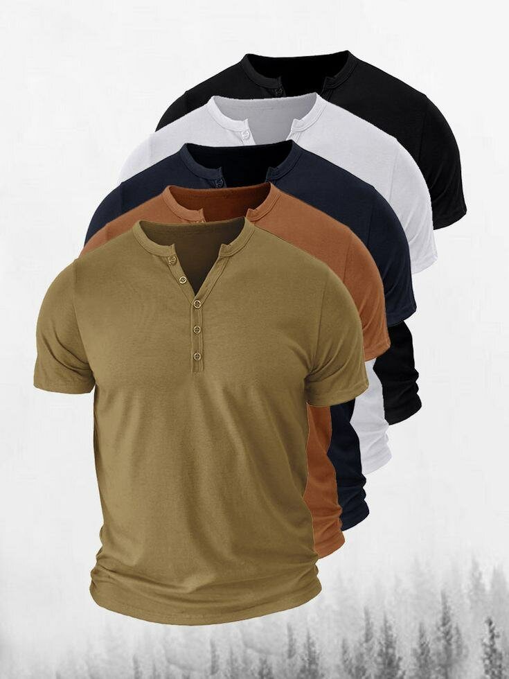 T-shirt Henley pour homme, confortable et élégant. Disponible en plusieurs couleurs.
