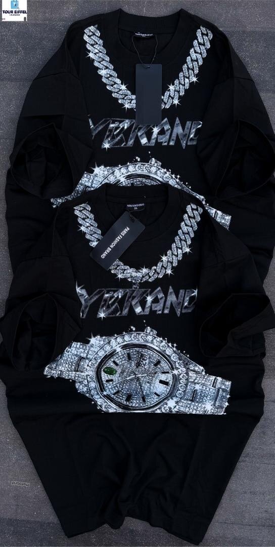 T-shirt homme noir avec design unique de chaîne et montre. Style moderne et tendance, parfait pour un look audacieux. Tissu confortable et résistant, idéal pour toutes occasions décontractées.