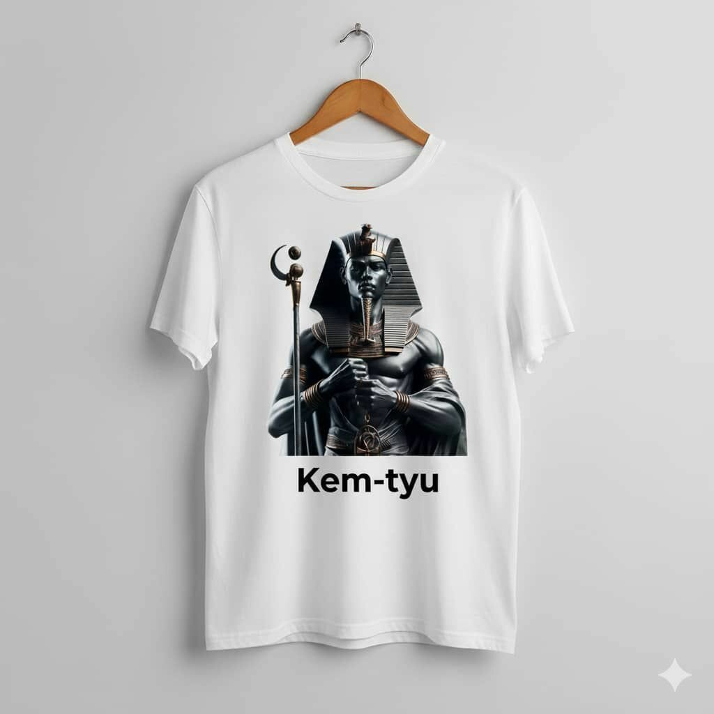 Découvrez notre t-shirt pour homme avec un motif unique Kem-tyu inspiré de l'Égypte ancienne. Conçu pour le confort et la durabilité.