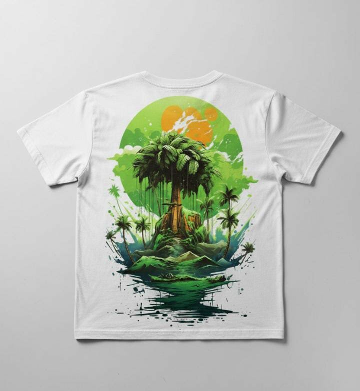 T-shirt original avec motif d'île tropicale. Design unique et confortable, parfait pour l'été. Imprimé sur une base en coton de qualité.