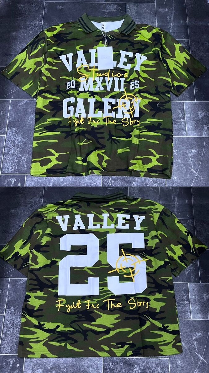 Découvre notre t-shirt camouflage, un choix parfait pour un style streetwear audacieux. Idéal pour les sorties décontractées, il combine confort et look tendance avec son design unique "Valley 25". Exprime ta personnalité avec cette pièce originale et affirme ton style avec audace!