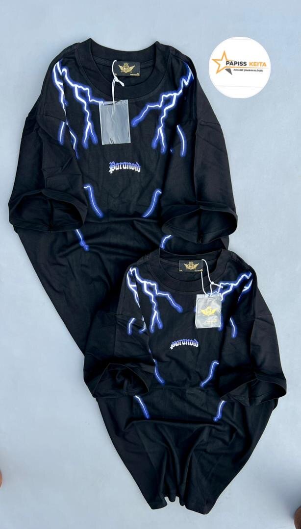 Découvrez ce T-shirt noir avec un design audacieux d'éclairs, idéal pour un style urbain moderne. Fabriqué en coton doux, il assure un confort tout au long de la journée. Parfait pour compléter votre look décontracté ou pour une sortie en soirée. Un essentiel pour tout amateur de mode tendance.