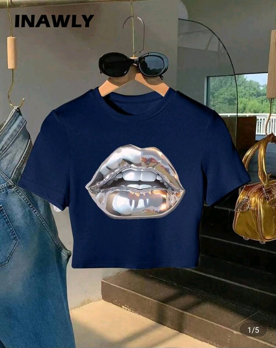 Exprimez votre style unique avec ce t-shirt audacieux featuring un grand imprimé de lèvres métalliques. Parfait pour un look décontracté ou une sortie entre amis, ce t-shirt offre confort et originalité. Fabriqué en coton doux, il assure un maintien optimal et respirabilité. Disponible en plusieurs tailles, c'est un indispensable pour toute garde-robe moderne.