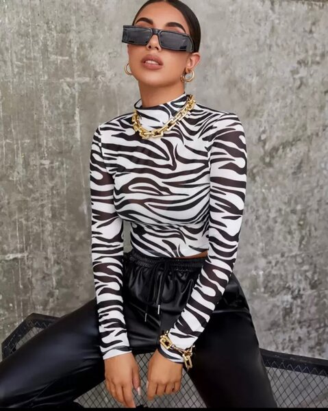 T-shirt ajusté avec impression zèbre. Conçu pour les femmes, ce vêtement est parfait pour un look audacieux et tendance. Léger et confortable, il convient pour une utilisation quotidienne ou pour des occasions décontractées.