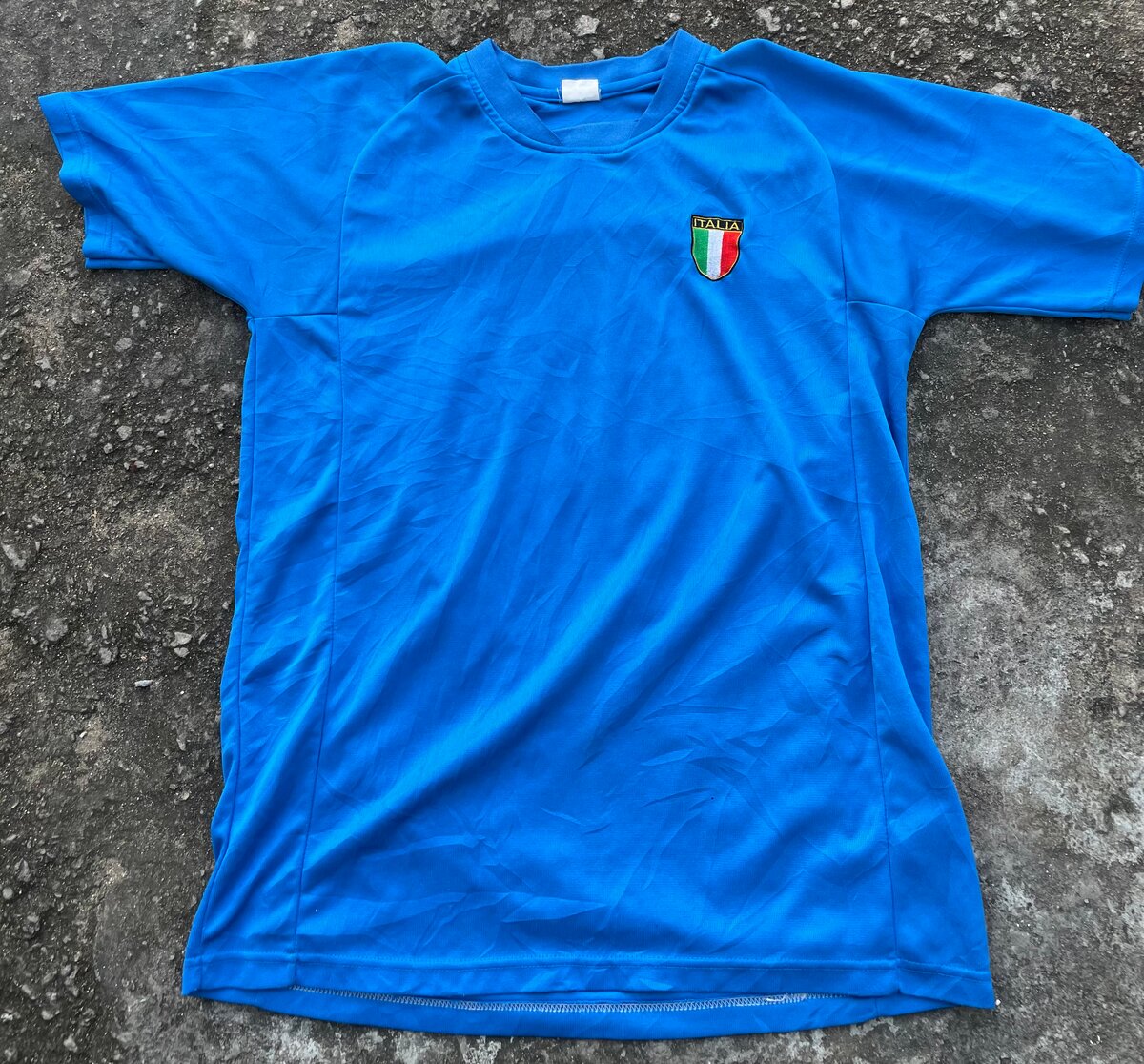 Découvrez cette T-shirt bleu avec un logo "Italia". Parfait pour les supporters ou simplement pour rester confortable au quotidien. Tissu léger et respirant, idéal pour toutes les saisons. Faites partie de l'équipe avec style !