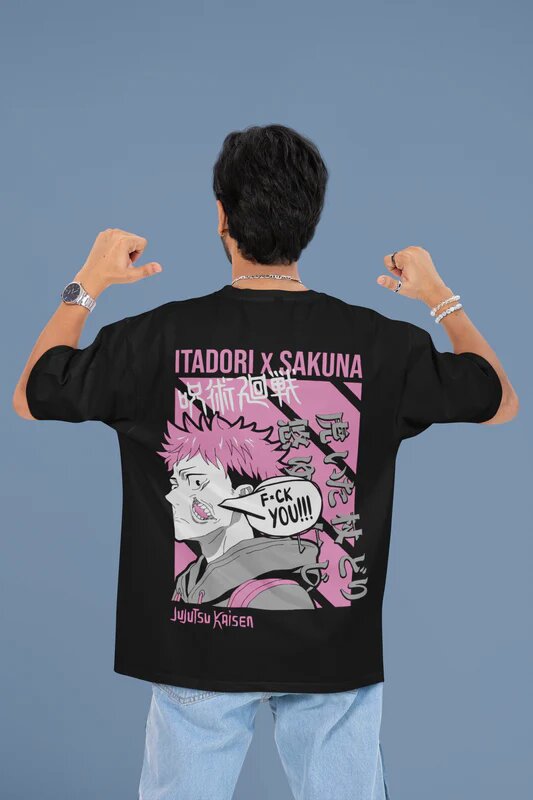 Découvrez notre t-shirt noir Jujutsu Kaisen avec un design unique d'Itadori et Sakuna. Idéal pour les fans d'anime, ce vêtement confortable et tendance est parfait pour un look décontracté. Conçu pour les passionnés de Jujutsu Kaisen.