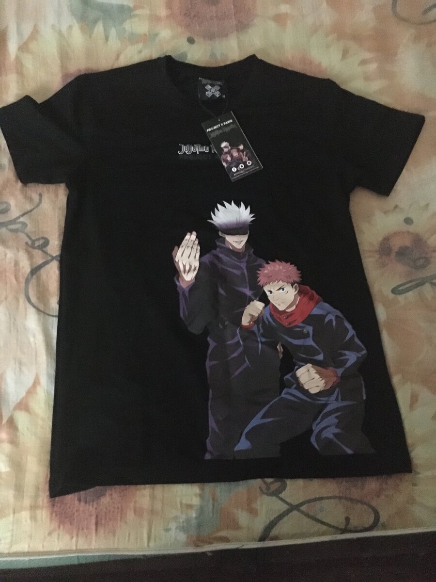 T-shirt noir Jujutsu Kaisen pour fans d'anime. Confortable et stylé, idéal pour un look décontracté ou cosplay. Matière douce, taille unisexe. Parfait pour les passionnés de manga.