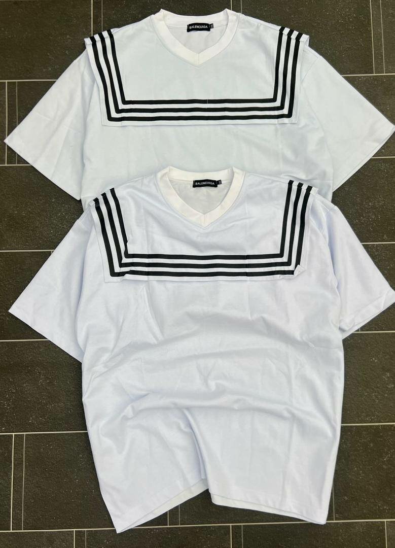 T-shirt en coton inspiré du style marin avec rayures contrastées. Parfaite pour un look décontracté et stylé. Disponible en noir et blanc.