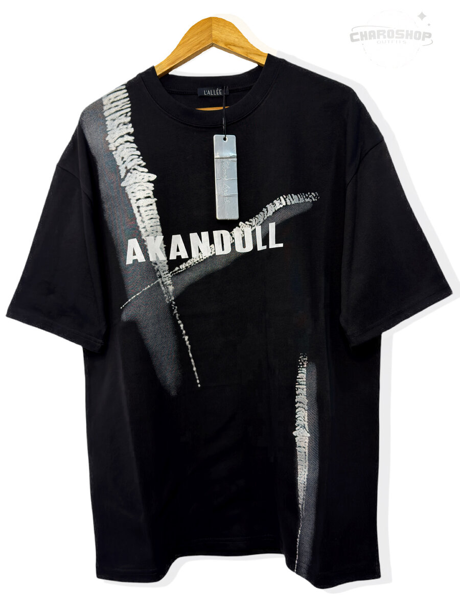 T-shirt noir Akandoll en coton de haute qualité avec un motif artistique unique. Idéal pour un style décontracté et moderne. Parfait pour la vie quotidienne ou les sorties entre amis.