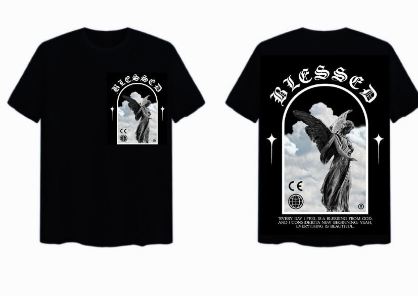 Ce T-shirt noir arbore un design captivant avec un ange et le texte "Blessed", idéal pour ceux qui cherchent à exprimer leur spiritualité avec style. Fabriqué en coton doux pour un confort maximal, il est parfait pour un usage quotidien ou des occasions spéciales. Un choix idéal pour les amateurs de mode urbaine et de symbolisme.