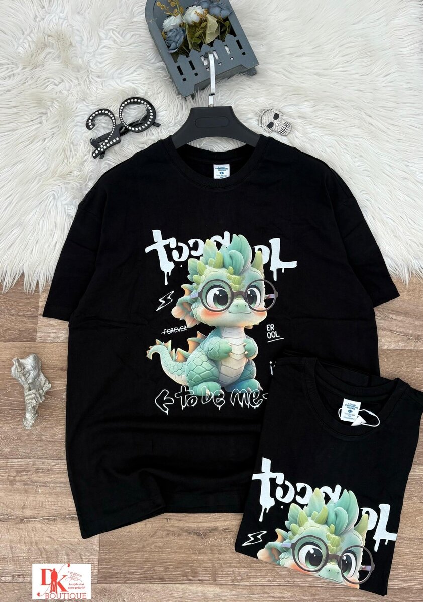 Adoptez un style unique avec ce T-shirt noir orné d'un adorable dinosaure graphique. Confectionné en tissu doux et respirant pour un confort optimal. Parfait pour les sorties décontractées ou les moments de détente à la maison. Idéal pour les amoureux de la mode ludique et originale.