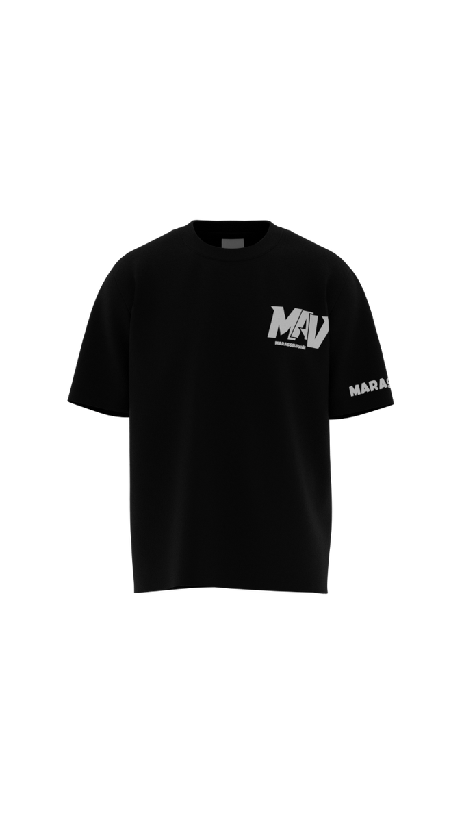 Découvrez notre T-shirt noir avec logo audacieux MAV. Fabriqué en coton doux 100% , il assure un look décontracté et moderne. Parfait pour un style urbain.