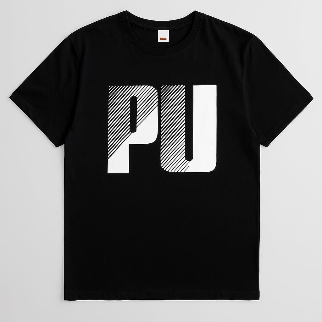 T-shirt noir classique avec design PU attrayant. Parfait pour un look décontracté et élégant. Disponible en différentes tailles pour un ajustement parfait. Fabriqué en coton doux pour un confort ultime.