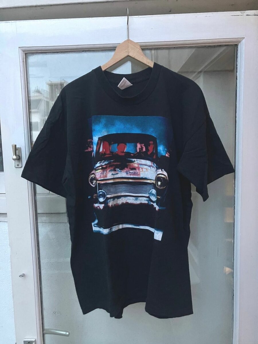 T-shirt noir vintage avec imprimé voiture. Parfait pour un style urbain et décontracté. Idéal pour les amateurs de mode rétro. Confortable et trendy, ce t-shirt s'intègre parfaitement à votre garde-robe quotidienne.