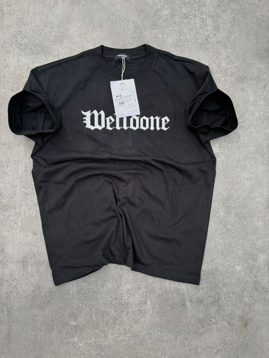 Découvrez ce t-shirt noir de la marque We11done, alliant style contemporain et confort. Parfait pour un look décontracté ou urbain. Fabriqué en matériaux de qualité, idéal pour toutes saisons. Un indispensable pour ajouter une touche de modernité à votre garde-robe.