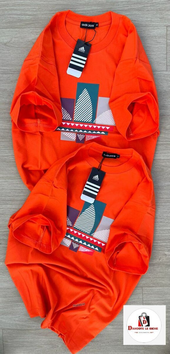 T-shirt orange vibrant avec design géométrique. Disponible pour enfants et adultes, parfait pour un look assorti en famille. Confortable et stylé, idéal pour le quotidien ou les sorties décontractées.