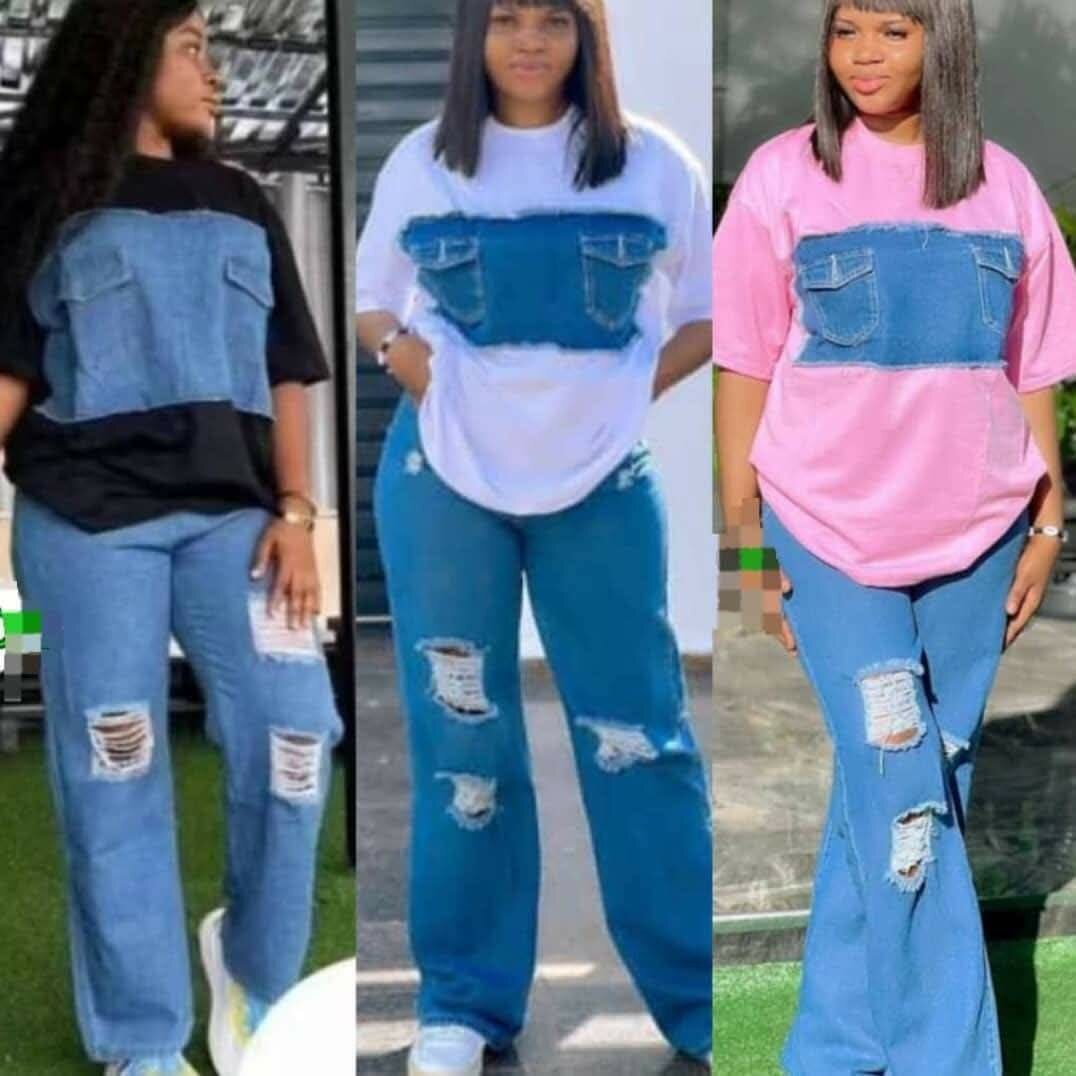 T-shirt décontracté à patchwork de denim pour femme. Confortable et stylisé, idéal pour un look casual chic. Parfait pour le quotidien ou les sorties décontractées. Disponible en plusieurs couleurs.