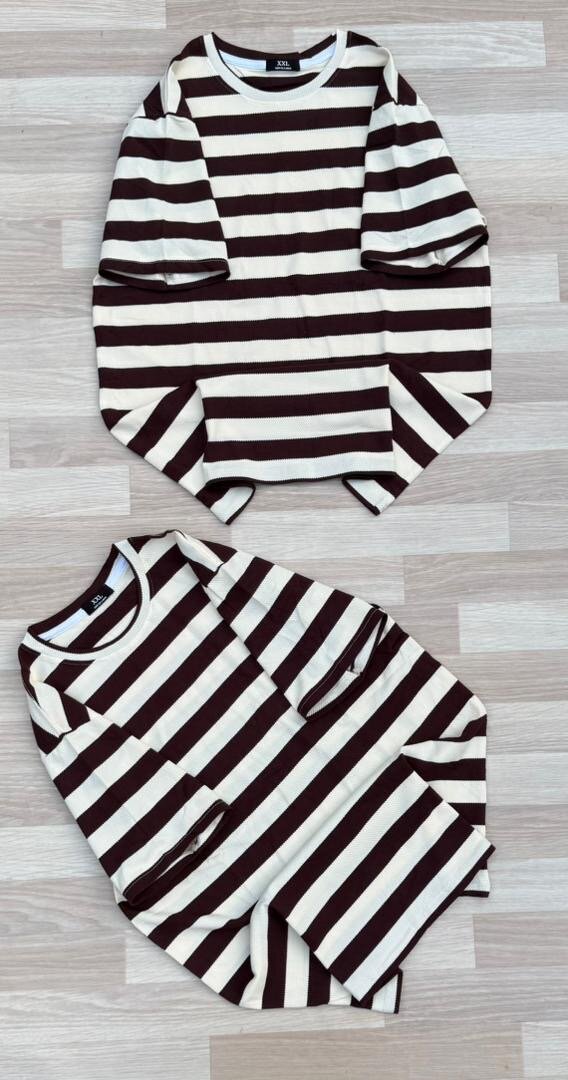 T-shirt confortable en coton à rayures, idéal pour un look décontracté. Polyvalent et respirant, ce modèle convient parfaitement aux journées chaudes et se marie facilement avec d'autres vêtements de votre garde-robe.