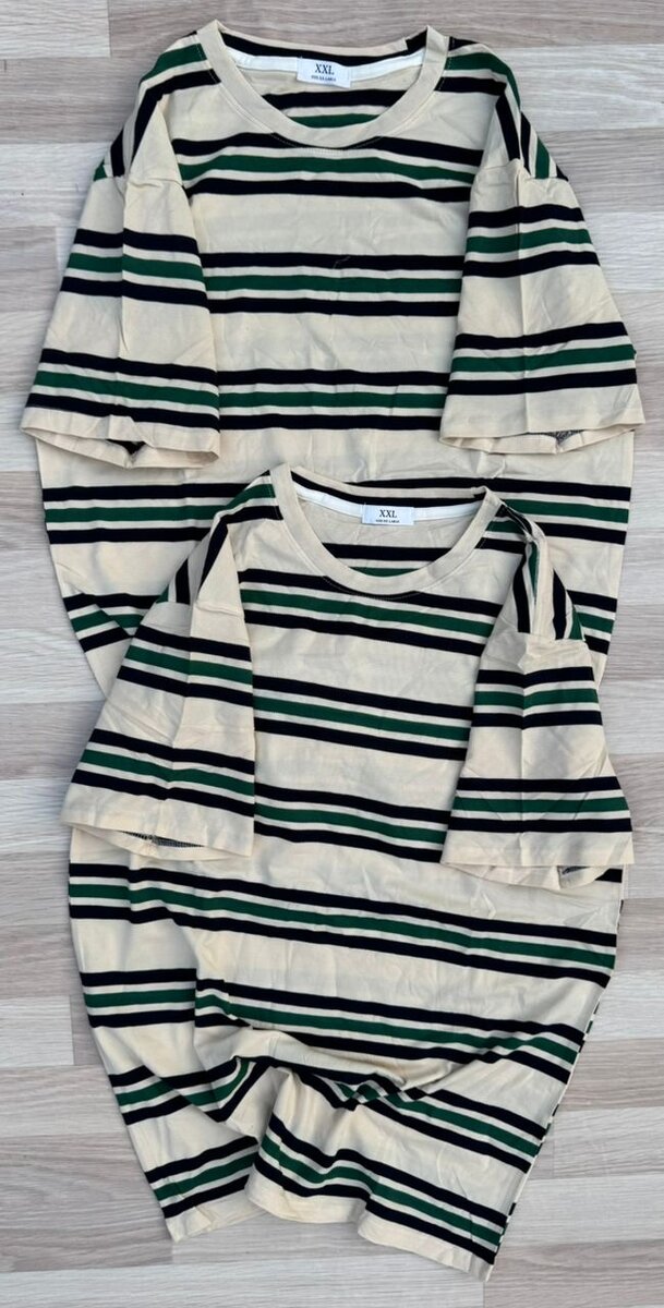 Lot de 2 t-shirts beige vert à rayures