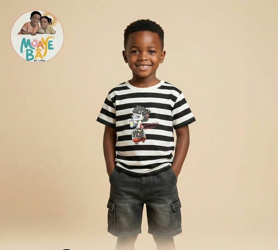 T-shirt rayé pour enfants, doux et confortable, idéal pour le quotidien. Motif amusant à l'avant. Parfait pour jouer ou se détendre.