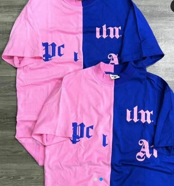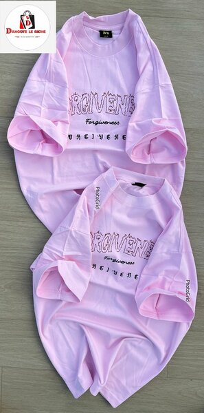 T-shirt rose en coton pour homme ou femme, avec un motif vert sur le devant et le dos. Conçu pour un usage quotidien, il est confortable et élégant.