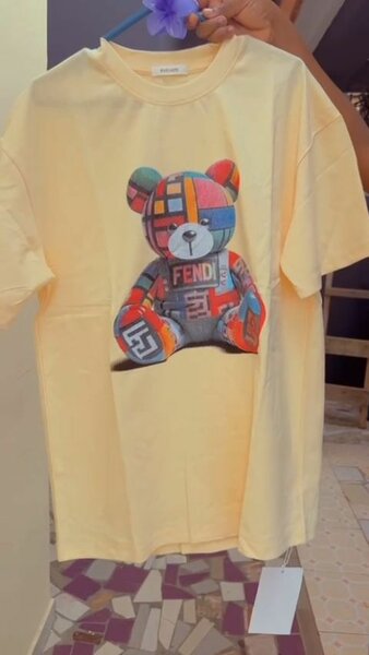 T-shirt rose à manches courtes avec un adorable motif ourson jaune. Parfait pour un look décontracté et tendance. Matière douce et confortable, idéal pour le quotidien. Disponible en plusieurs tailles.