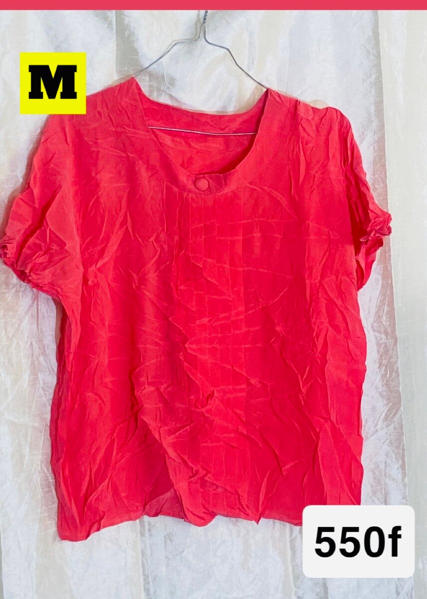 Ajoutez une touche de couleur à votre garde-robe avec ce t-shirt rouge vibrant pour femme. Confortable et élégant, il est parfait pour un look décontracté ou chic. Taille M.