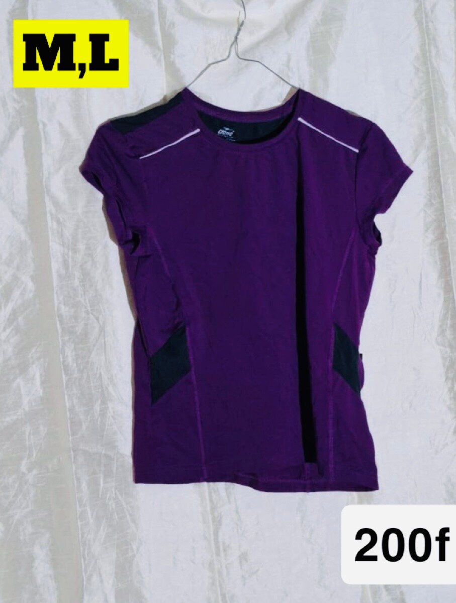 T-shirt sportif violet pour femmes, confortable et respirant. Idéal pour l'entraînement ou le quotidien. Disponible en tailles M et L.