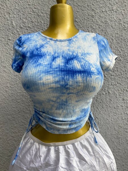 Découvrez notre T-shirt tie-dye femme, parfait pour un look décontracté et tendance. Fabriqué en matériaux doux et extensibles, il offre un confort optimal et un style moderne avec son design unique et ses œillets décoratifs. Idéal pour les sorties casual ou pour ajouter une touche de style à votre garde-robe quotidienne.
