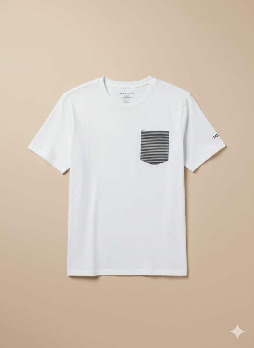 T-shirt unisexe élégant avec une poche rayée contrastante. Confortable et moderne, ce t-shirt est parfait pour un style décontracté. Idéal pour toutes les occasions, ce vêtement deviendra un indispensable de votre garde-robe. Fabriqué en coton de haute qualité pour un maximum de confort et de durabilité.