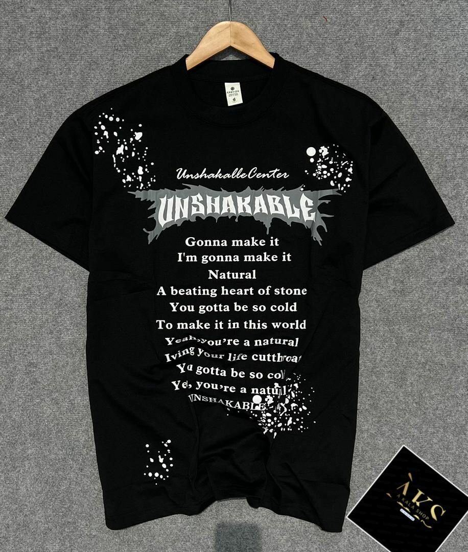 T-shirt noir unisexe avec impression graphique audacieuse. Parfait pour un style décontracté et affirmé. Matière confortable et design unique pour les amateurs de mode urbaine. Idéal pour toutes les saisons et facile à assortir.