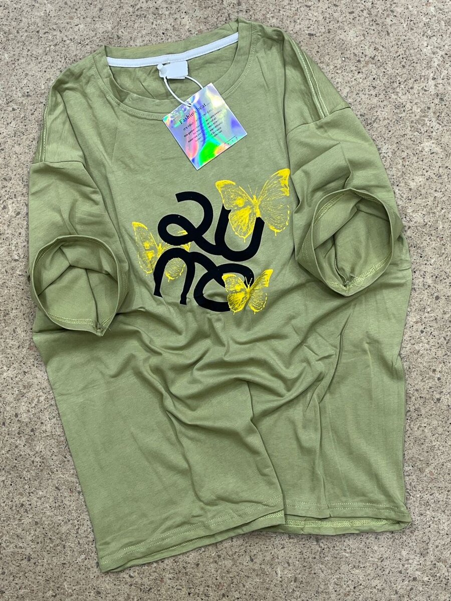 Ce t-shirt vert tendance avec des motifs de papillons jaunes est idéal pour un look décontracté et branché. Confortable et stylé, il est parfait pour les sorties entre amis ou les journées détentes.