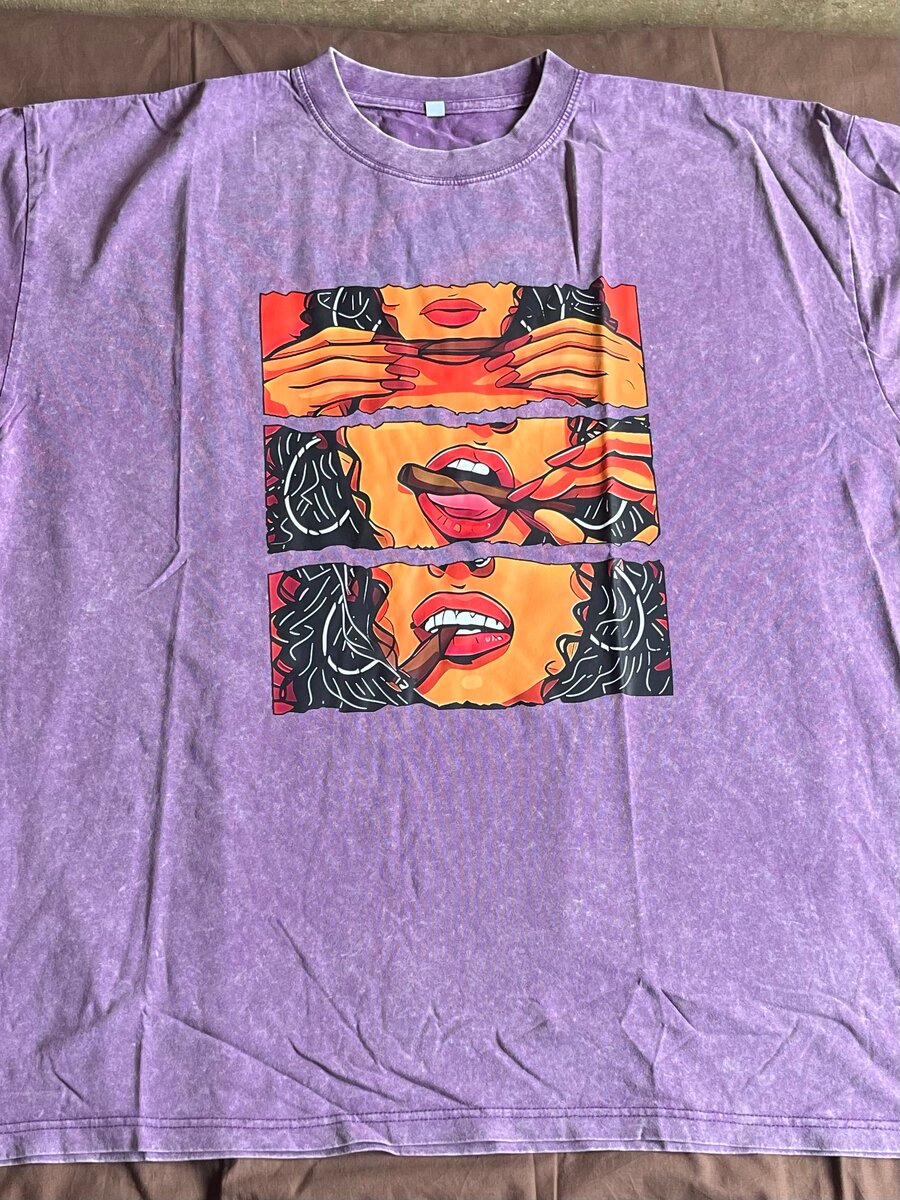 Découvrez ce T-shirt violet original, orné d'un imprimé artistique vibrant. Fabriqué en coton doux pour un confort optimal, il est parfait pour ajouter une touche de couleur à votre tenue quotidienne. Idéal pour les amateurs de mode à la recherche de pièces uniques.
