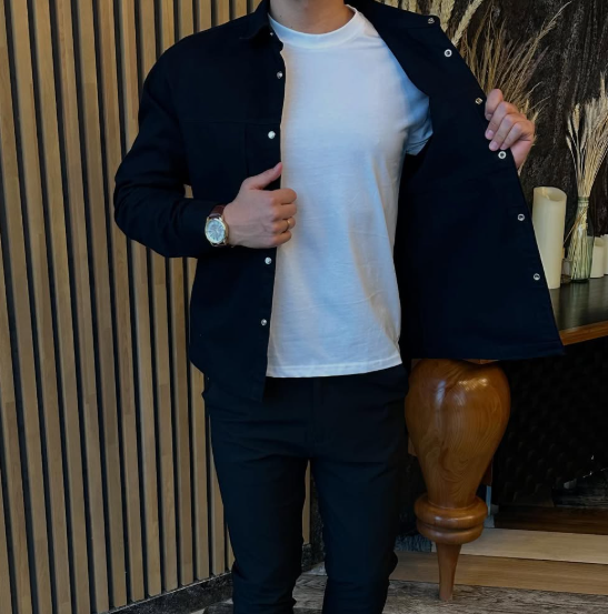 Минимализм и комфорт в одном луке! Черная рубашка в сочетании с базовой белой футболкой – это беспроигрышный вариант для любого случая. Дополняем образ стильными брюками и удобной обувью. Лаконичность, которая всегда в моде.