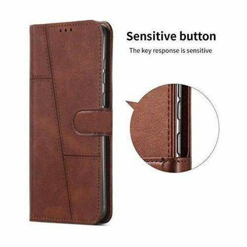 Coque étui à rabat en cuir synthétique de couleur marron compatible avec Tecno Camon 40 pro pour mieux protéger votre téléphone contre les chocs inattendus