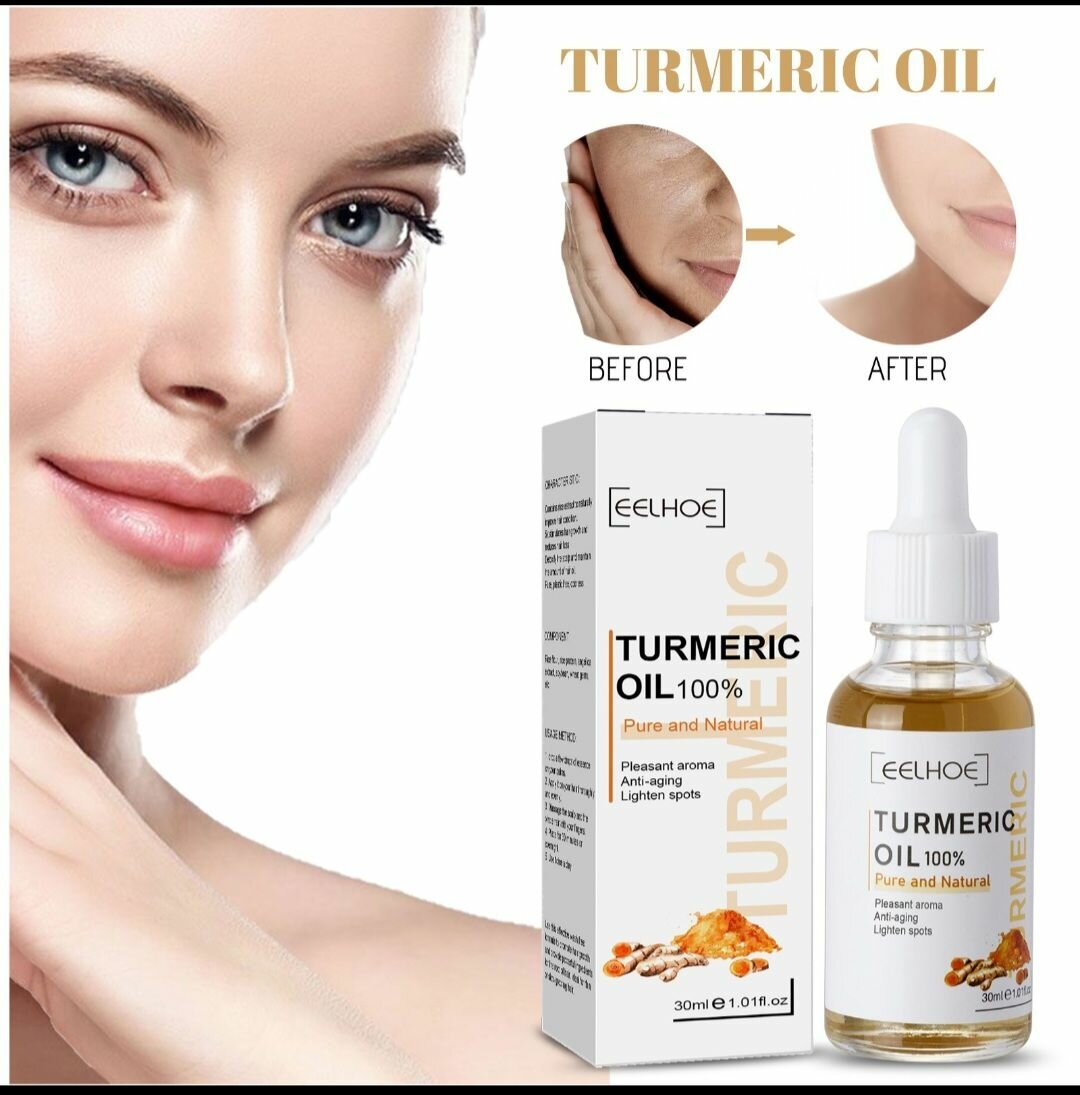 Tumeric oil eradicates acne, dark spot leaving a flawless skin..you look younger than your age..