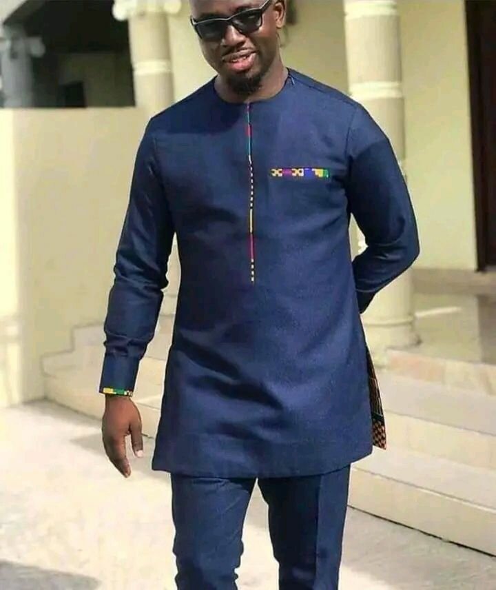 Tunique complet homme, Couture africaine, couleurs bleu foncé taille disponible :L, xL et xxL