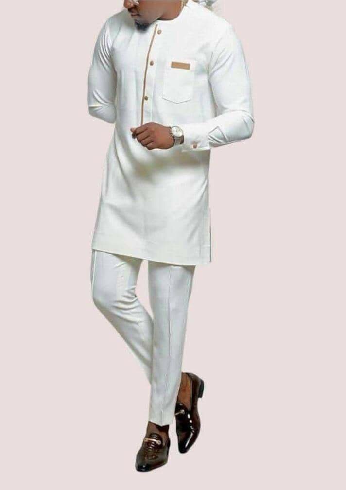 Tunique complet homme en coton, manches longues de couleur berge taille disponible xL xxL