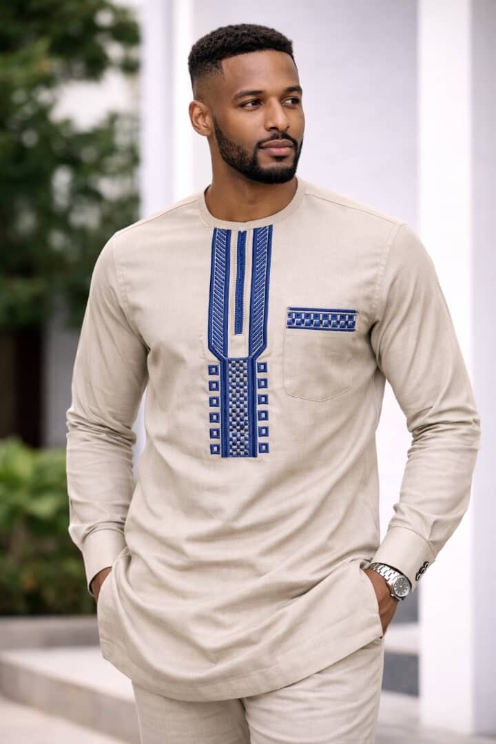 Découvrez notre tunique pour homme, parfaite pour toutes les occasions élégantes et décontractées. Confectionnée dans un tissu de haute qualité, elle offre confort et style grâce à ses motifs raffinés. Idéale pour les rassemblements culturels ou les sorties urbaines,