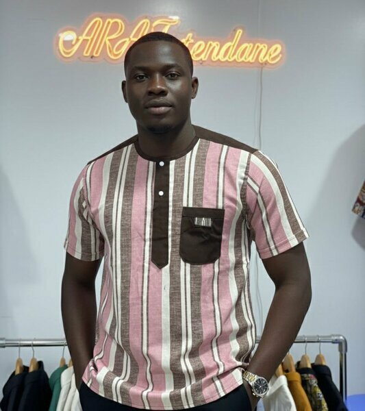 Tunique rayée beige/rose homme. Idéal pour ceux qui aiment l’élégance discrète et les inspirations ethniques. Tissu léger, neuf.