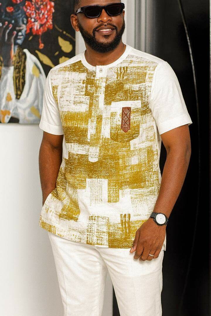 Découvrez ce t-shirt pour homme avec un motif ethnique élégant. Fabriqué en coton de haute qualité, il offre à la fois confort et style. Parfait pour les sorties décontractées ou les événements semi-formels. S'accorde aisément avec des pantalons ou des shorts pour un look chic et moderne. Un choix idéal pour ceux qui souhaitent allier tradition et modernité dans leur garde-robe.
