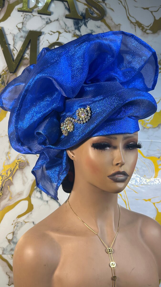 Adoptez une allure sophistiquée avec ce turban bleu éclatant, agrémenté de magnifiques bijoux. Parfait pour les occasions spéciales, il apporte une touche royale et élégante à votre tenue. Fabriqué dans un matériau léger, il est confortable à porter toute la journée. Faites une déclaration de style unique et captivante !