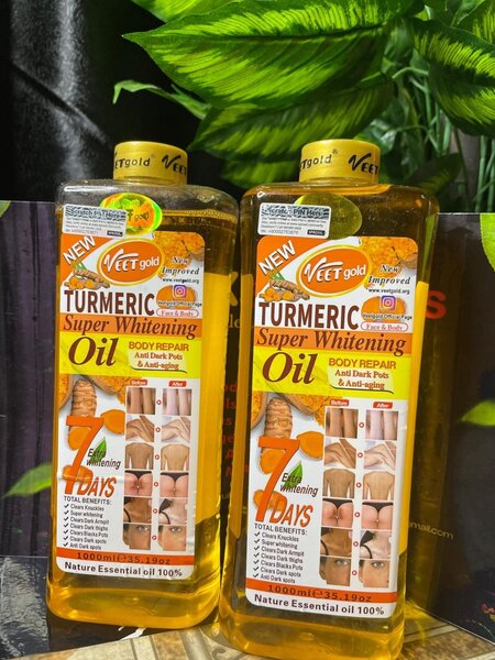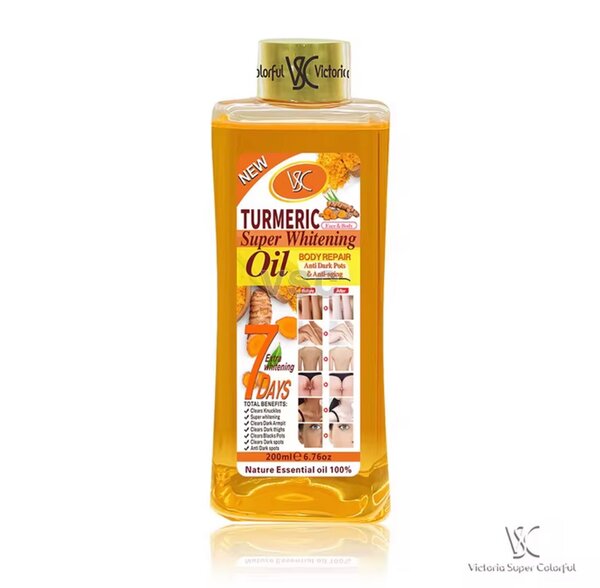 Experience radiant skin with our Turmeric Super Whitening Oil. Enriched with natural wheat germ and sweet almond oils, it repairs and whitens the skin in just 7 days. Ideal for a luxurious massage, this body oil is perfect for achieving a glowing complexion. Embrace the power of nature for your skincare routine.